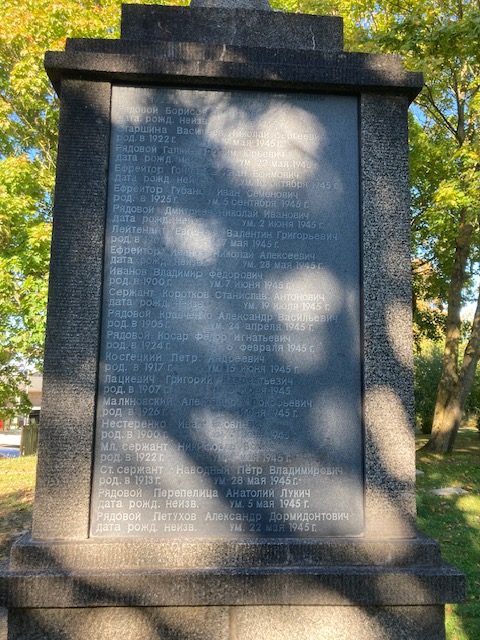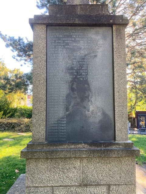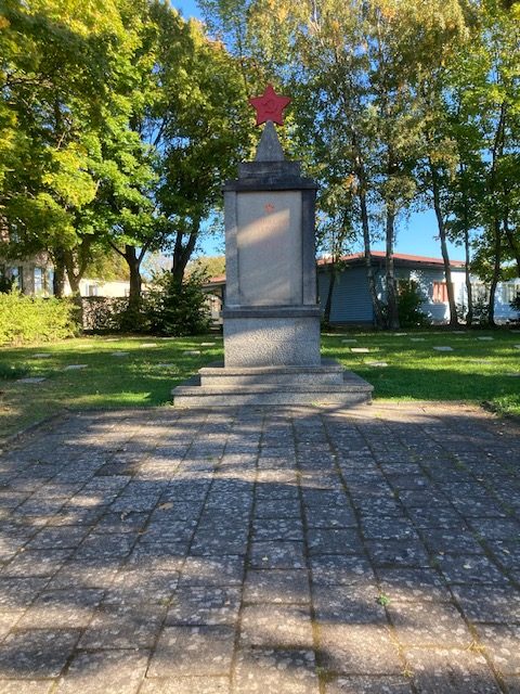 Grabstätte für 53 Soldaten und Offiziere der Roten Armee, davon nur 31 namentlich bekannt. Der Friedhof liegt gegenüber dem Bahnhof Bergen auf Rügen. Die Dienstgrade, Familiennamen, Vornamen, Vatersnamen und Lebensdaten der hier Beigesetzten stehen soweit bekannt auf den Tafeln an der linken und rechten Seite des Gedenksteins.